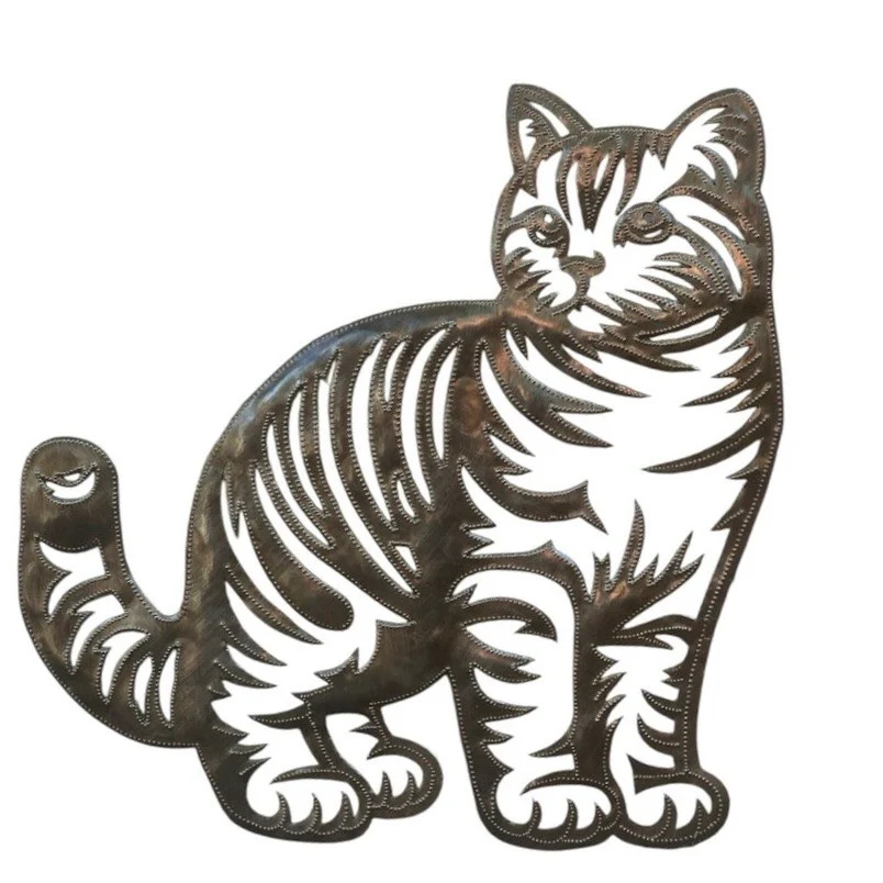 Neu aus Haiti gibt es unsere Katzenwandbilder! Die Katzen werden aus einem upcycelten Metallfass in Handarbeit hergestellt. Der Kauf sichert Arbeitsplätze für Eltern in Port-au-Prince.